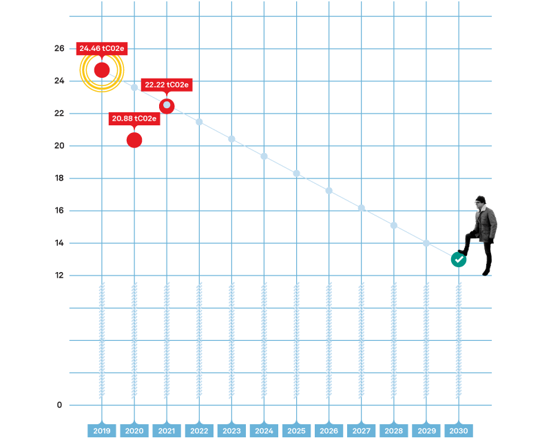 First we needed to understand the impact that the current business model has in terms of carbon emissions. We worked with an external consultant (eight versa) to help us understand our baseline footprint and chose 2019 as the last year of ‘business as usual’.