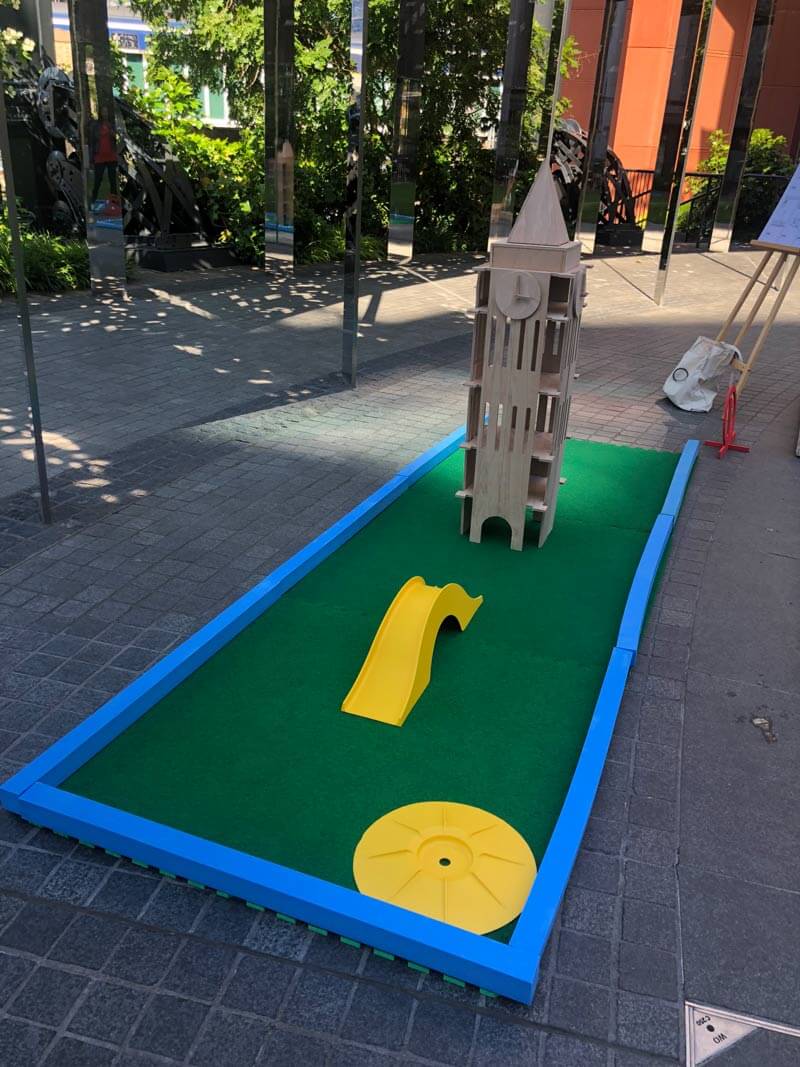 We created our own mini golf course using models of various London landmarks, including: Big Ben, the London Eye, the Shard and Tower Bridge.
